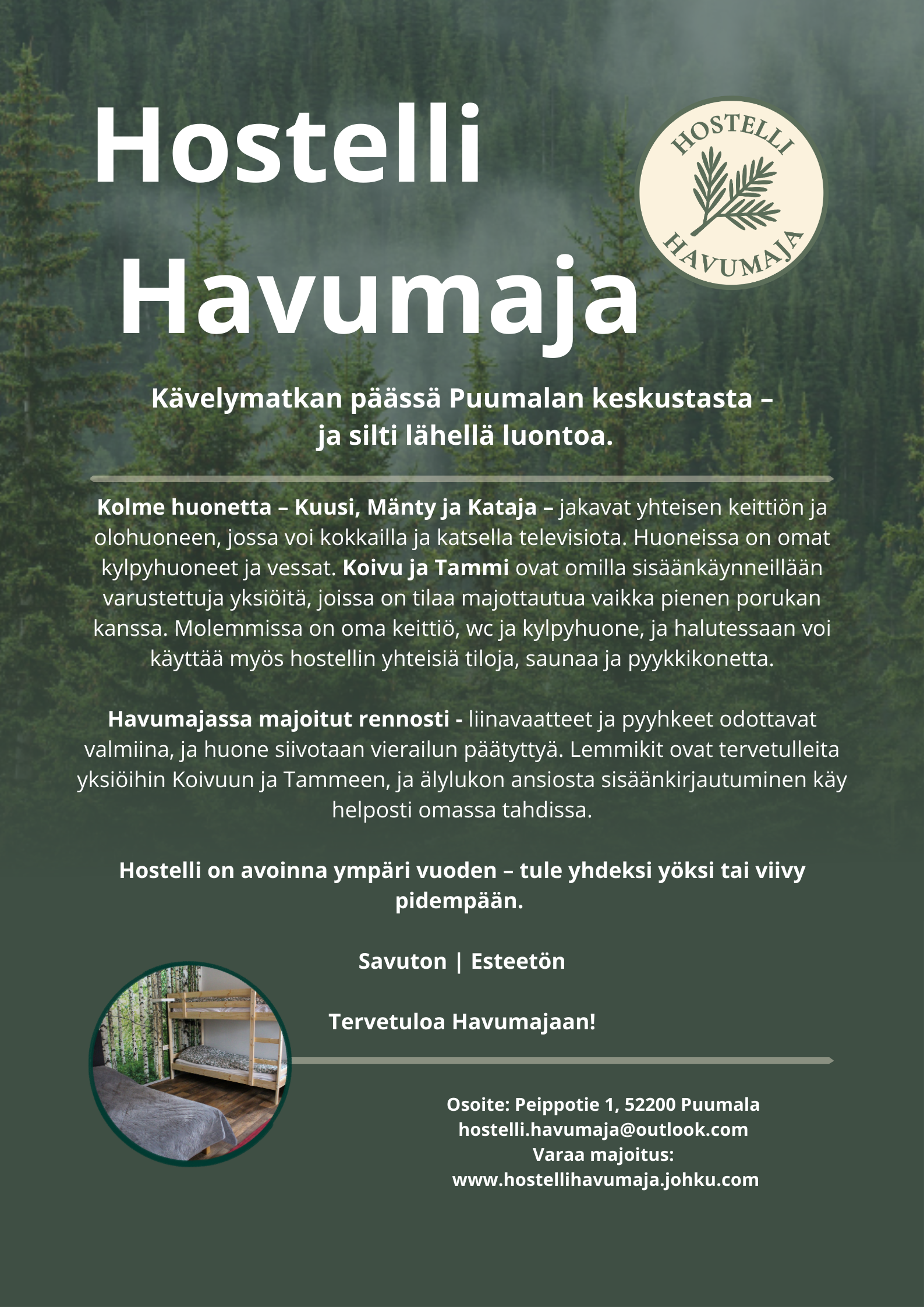 Kotisivut ja varaukset: https://hostellihavumaja.johku.com/fi_FI