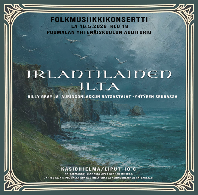 Tule viettämään lauantai-iltaa irlantilaisen folkmusiikin parissa Auditorioon klo 18 alkaen Billy Grayn ja auringonlaskun ratsastajien tahdittamina.