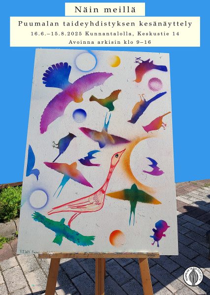 Puumalan Taideyhdistys järjestää perinteisen kesänäyttelyn teemalla Näin meillä 16.6.-15.8.2025 Puumalan kunnantalolla, Keskustie 14. Avoinna arkisin klo 9–15.