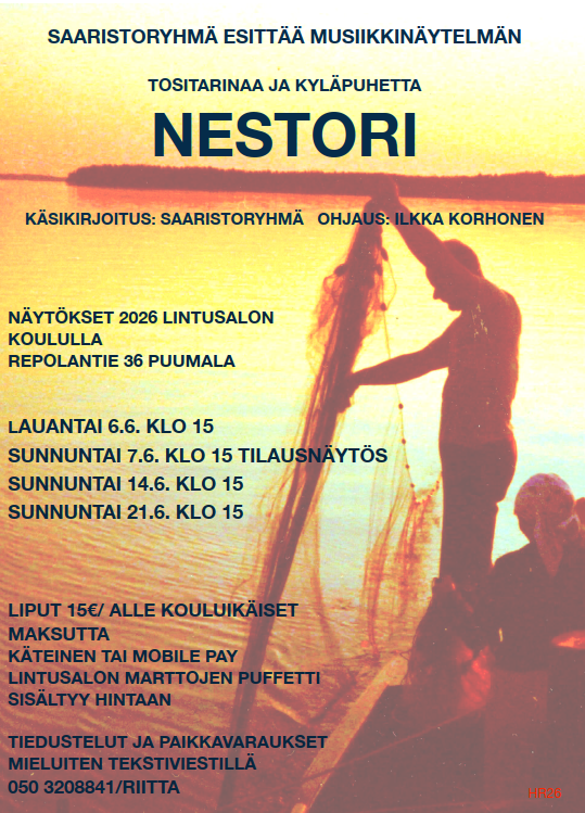 Saaristoryhmä esittää musiikkinäytelmän Nestorin Lintusalon koululla.