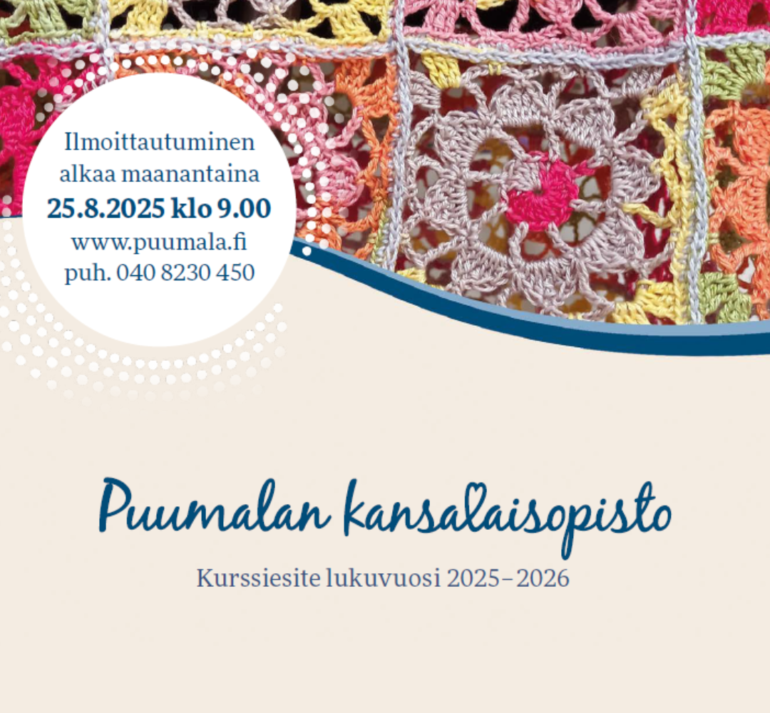 Voit ladata tästä Puumalan kansalaisopiston kurssiesiteeseen 2025-2026 (pdf) tai lukea digilehtenä täältä.