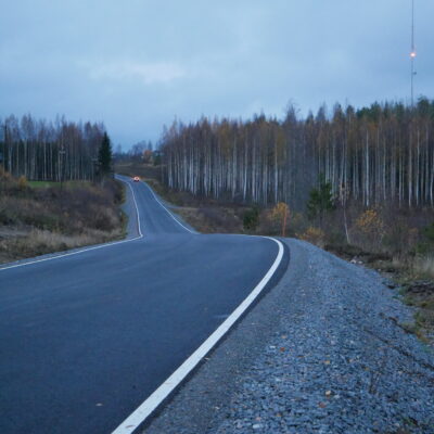 Tieremontti alkoi toukokuussa 2025 sivuojien kaivamisella ja sivuojarumpujen vaihtamisella. Seuraavana oli vuorossa maakivien poisto, joita olikin 343 kappaletta! Kesäviikkojen aikana urakassa toteutettiin sivuojien louhinnat ja päätierumpujen uusiminen. Vanha asfaltti jyrsittiin ja murskattiin massaksi. Päälle ajettiin mursketta. Pahoittelut vielä asianosaisille puhjenneista renkaista – ne olivat kärsimyksenne arvoisia. Kesän loppupuolella oli päällystys- ja viimeistelytöiden aika.